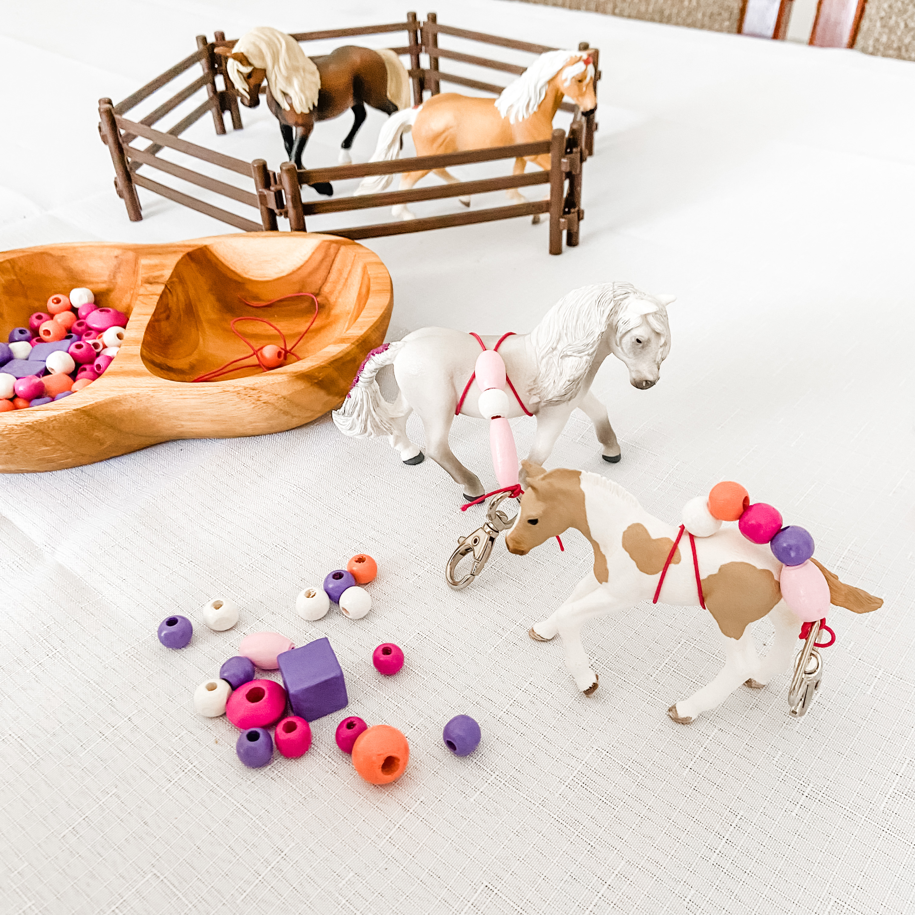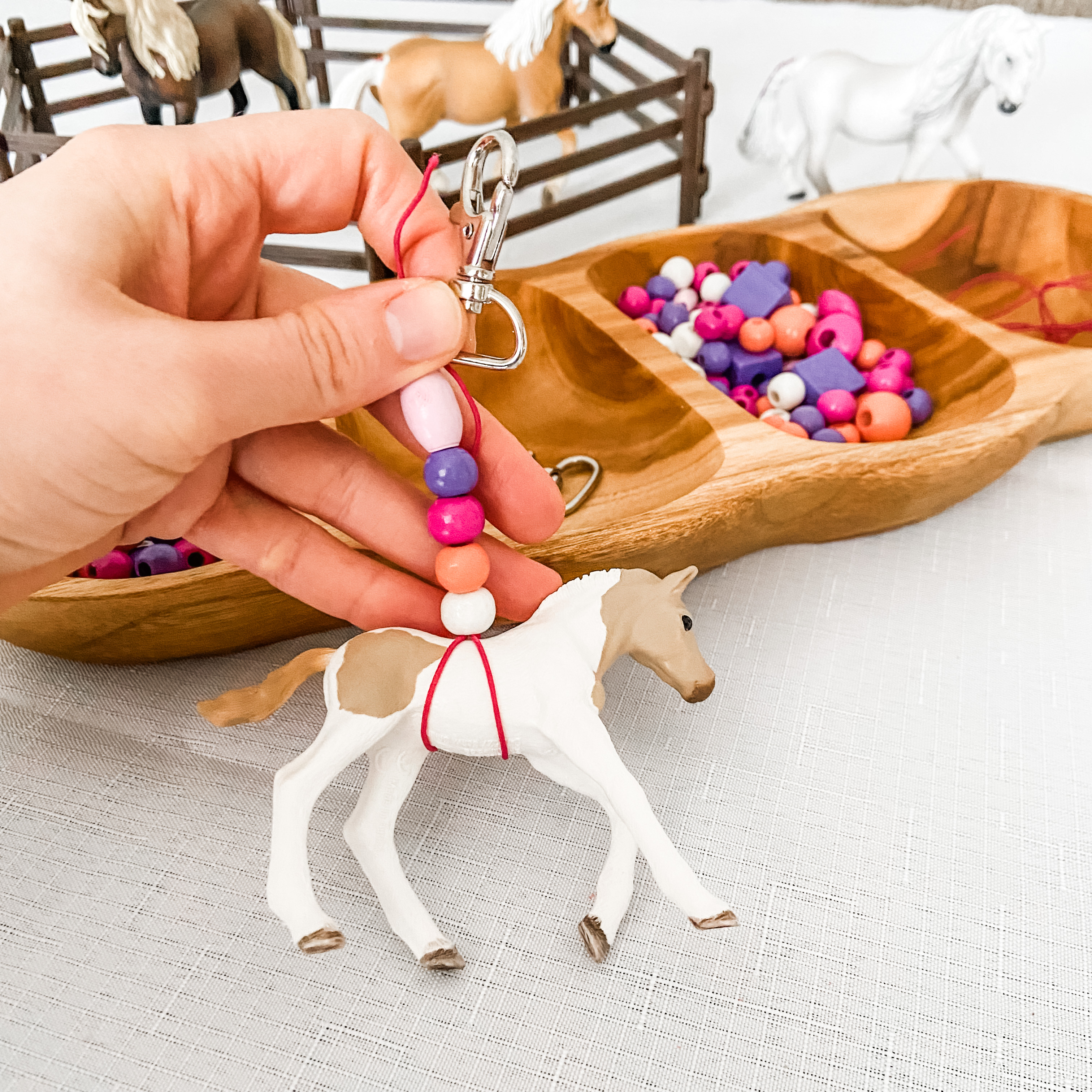 - Craft activity instructions which, when made, are perfect as a party favour: a Horse Club pony beaded keychain. You can find the perfect foals for this activity here at MiniZoo.