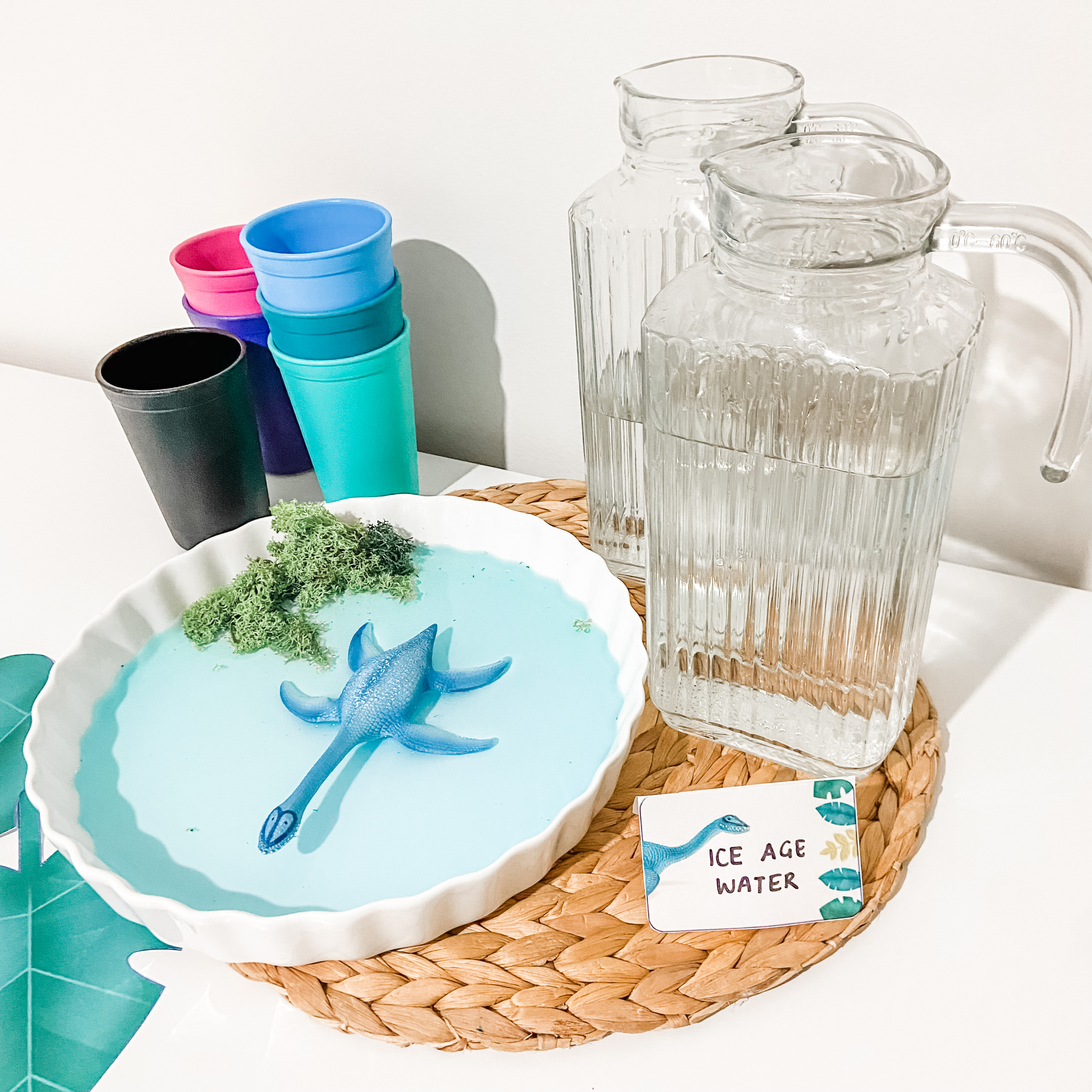 - Bottle or cup wrap labels (featuring a T-Rex, Giganotosaurus or Plesiosaurus) also with easy instructions, and perfect for writing names on for personalisation and easy guest use to avoid misplacing their drinks