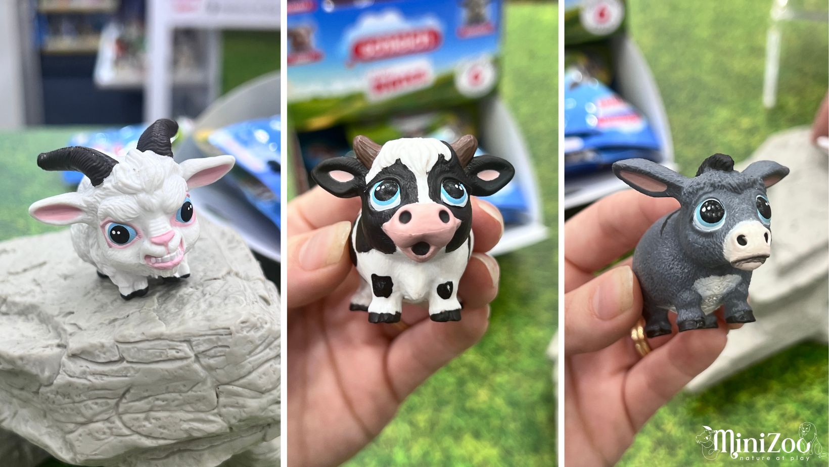 ...and the last items we have to show from the Fair are the Mini Mates. These adorable pocket-sized animal figures embody a whole range of emotions, from the Grumpy Goat to the Cheerful Piglet, kids will adore these wide-eyed animal toys. The Mini Mates come in a blind bag.