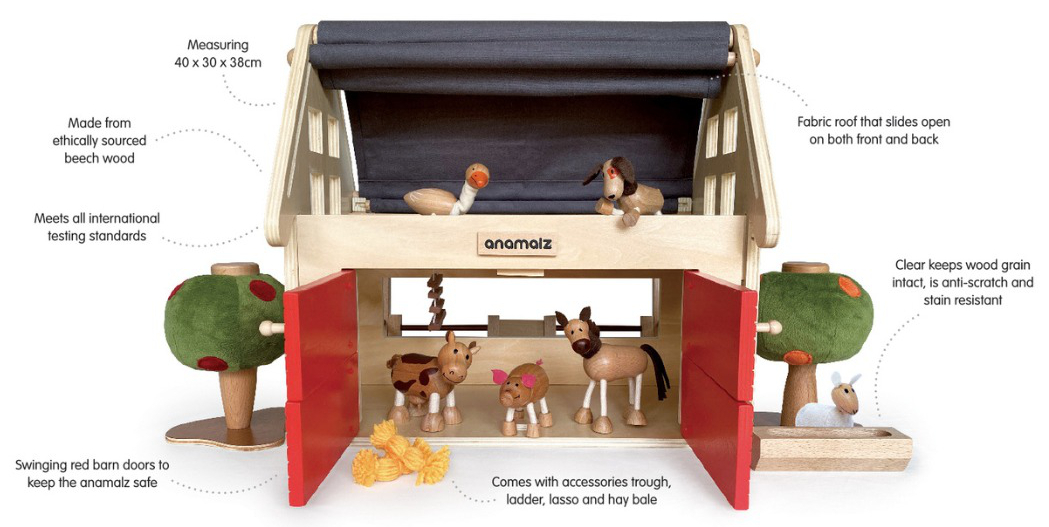 The AnamalZ Barnhouse is a gorgeous wooden stable with two levels, working doors, a trough, hay bales, and fences. The fabric roof opens so kids can reach the loft level easily, and the sturdy wooden base makes it easy to reposition without knocking over the setup.