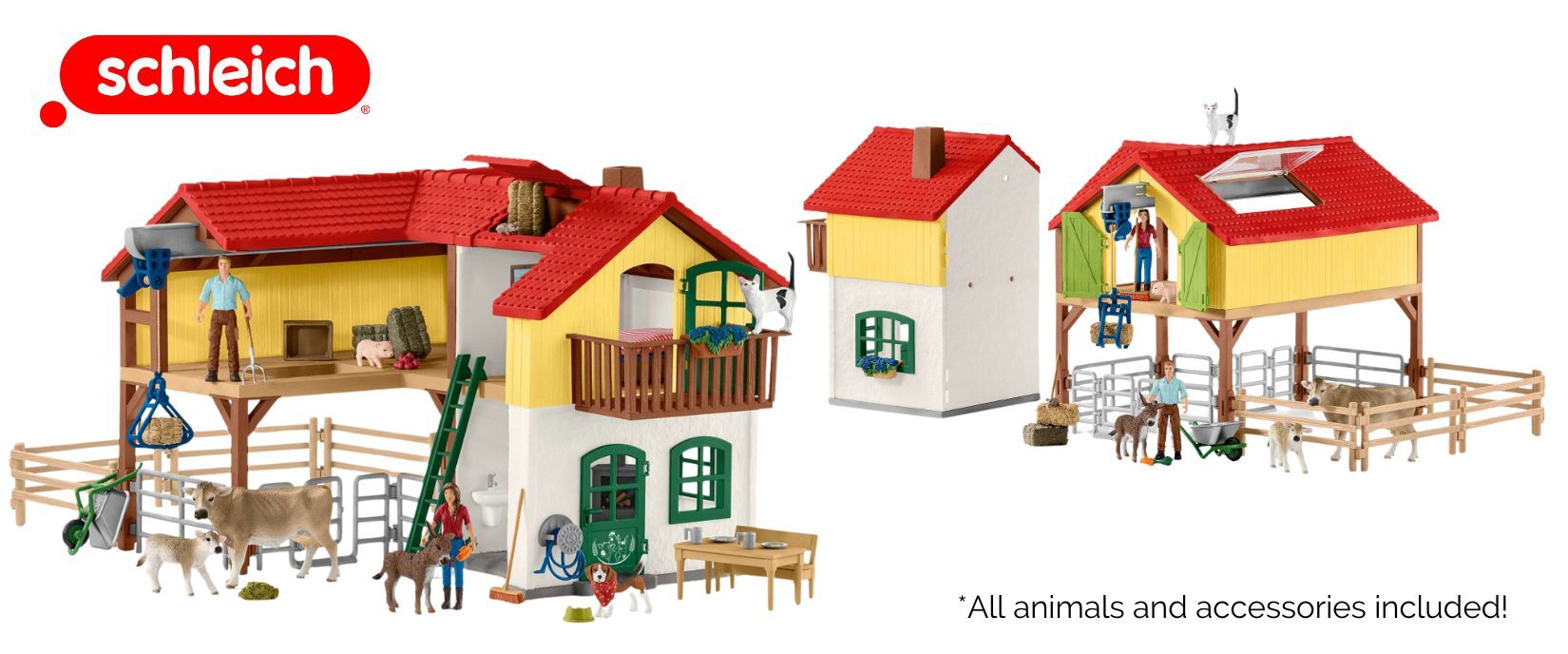 These are the classic Schleich barn playsets! Designed with the signature Schleich detail and realism, both the Large Farm (yellow) and Red Barn are fully kitted out with animals, people, hay, feeding accessories, and more, so you don't need an existing collection to get straight into play! These sets do, however, need to be put together before play, so if you're gifting to a loved one, it may be best to set it up first!